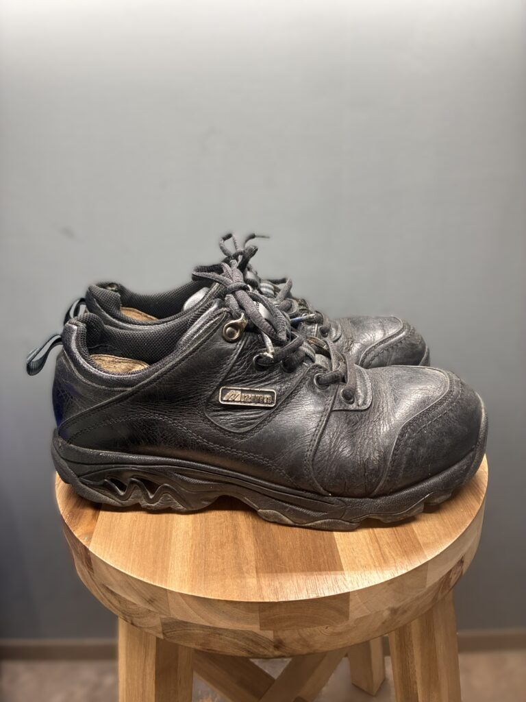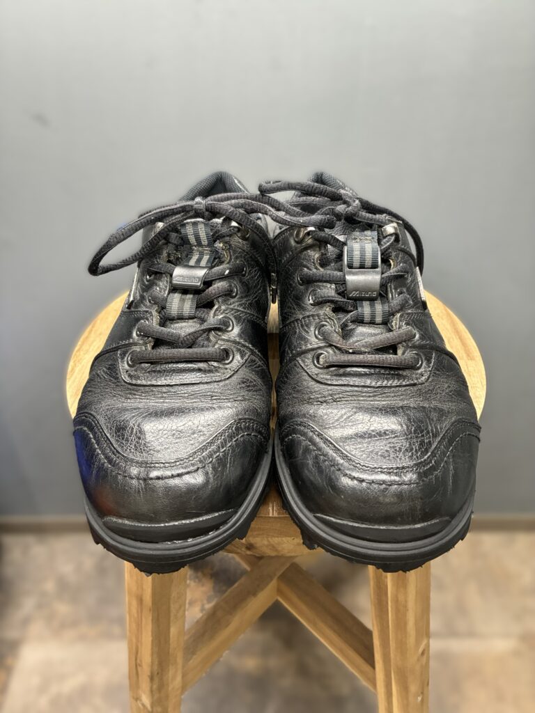今回はMIZNOのレザースニーカーの修理です。長く履かれていて内側の破れも見られたのですが、今後もたくさん履いていきたいとのことでしたので、オールソール交換と合わせて全体的な修理を行いました。