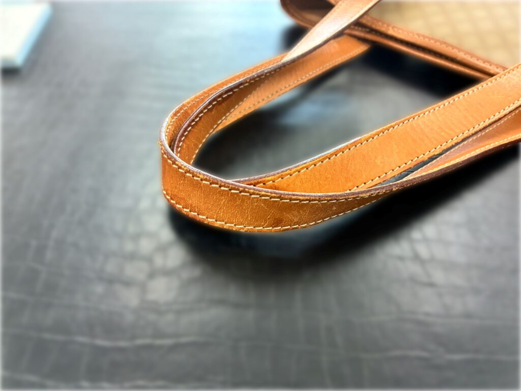 しかし、レザーの特性として取れないシミになることがあります。まず、よく触る持ち手部分の表面が、擦れて乾燥し、剥がれます。すると浸透しやすい部分ができ、その部分だけが濃く変色してしまいます。あとはどれだけケアしてみても、浸透の違いで色の差ができて汚くみえてしまうのです。