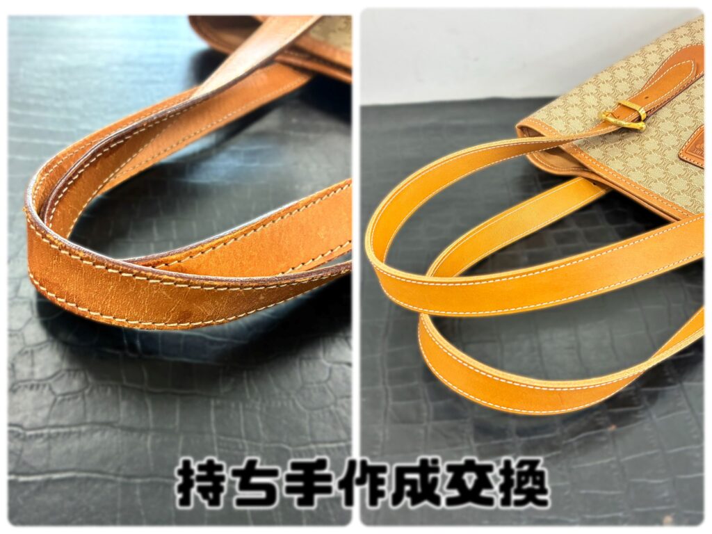 「CELINE」レザー持ち手の作り替え修理 レザーが変色してしまった