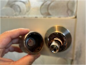 お風呂のドアノブはさびる!? お客様より、「お風呂のドアノブが動かない」ということで修理のご依頼でした。どんな状況かなーと伺ってみると確かに動きが悪かったです。通常の分解方法で中身を確認しようとしますが、なぜか分解できな […]