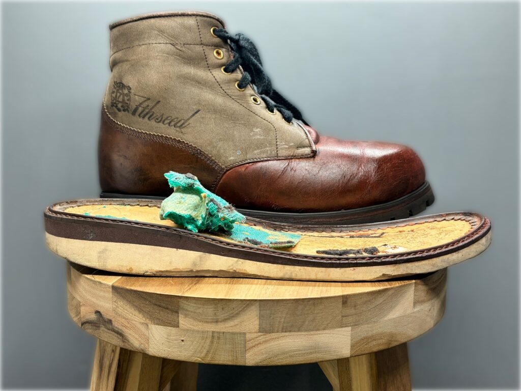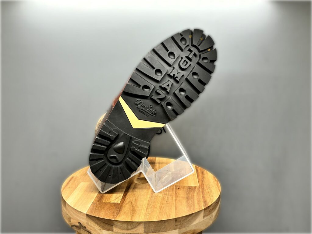 お客様のお靴の履き心地がよくないとのことで、一気にソール交換をしたいとのご依頼。お客様の好みをお聞きし、今回はドクターソールのTUMAZソールとなりました。このソールはツキノワグマをモチーフにしたデザインで登山用ソールの機能を持ったソールです!